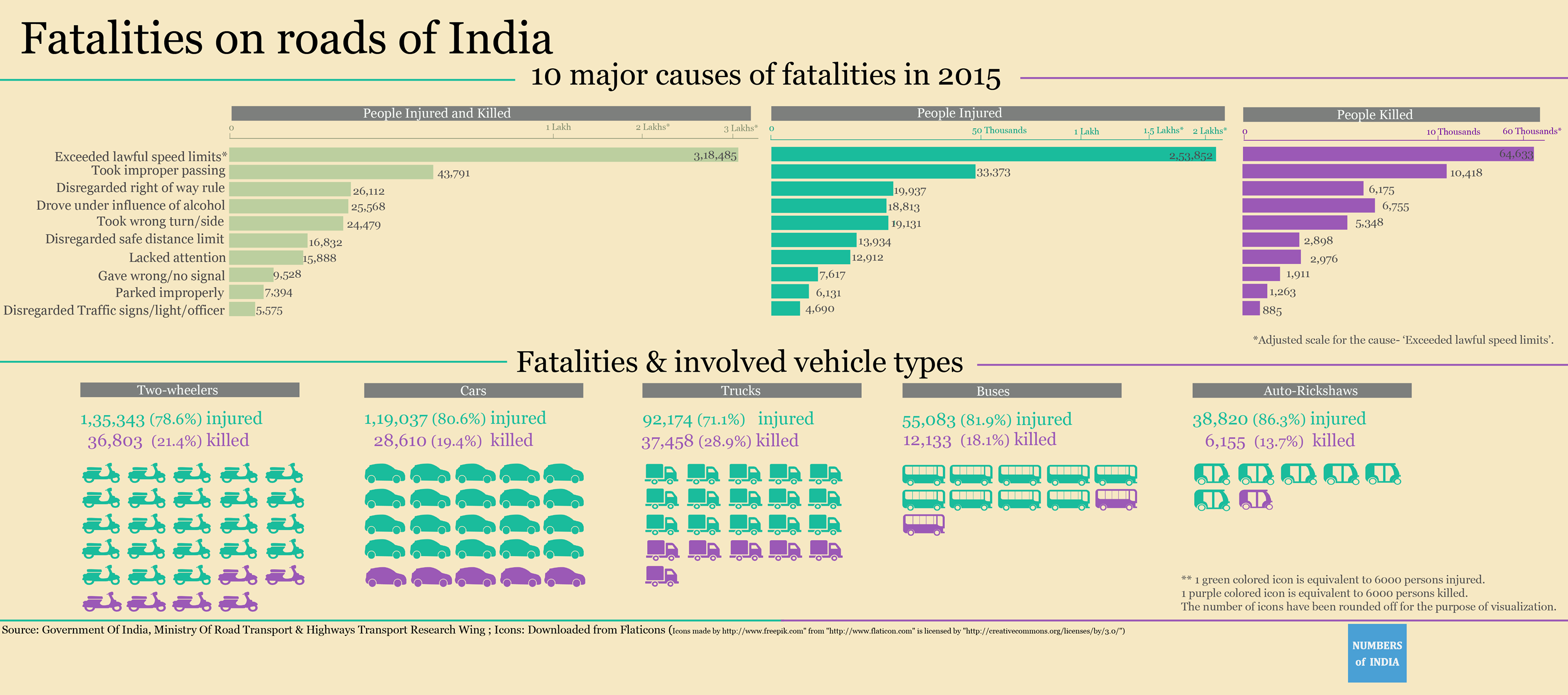 In the year 2015, 400 people died every day in road accidents. 77.1% of the road accidents occurred because of driver's fault.